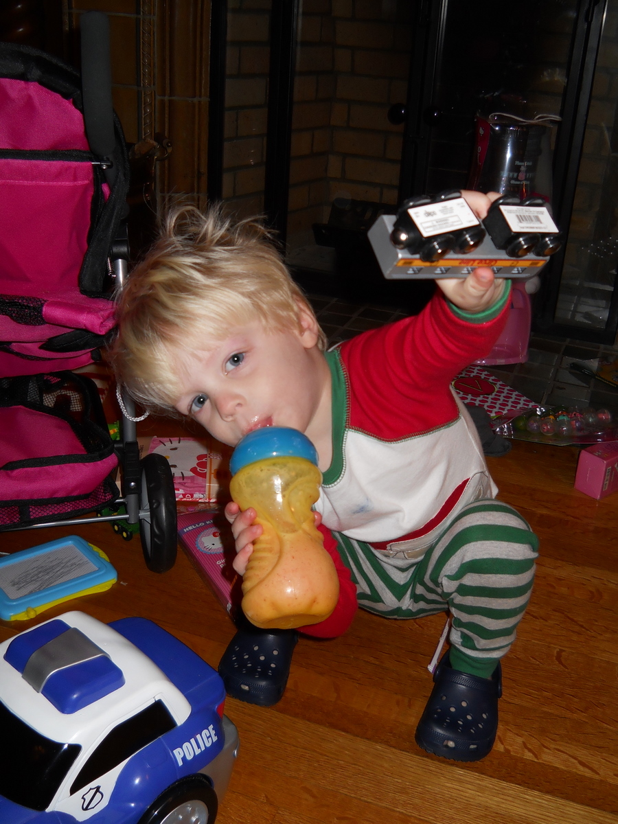 We opened our Christmas Eve presents (pajamas) and as you can see, Addie was not thrilled...